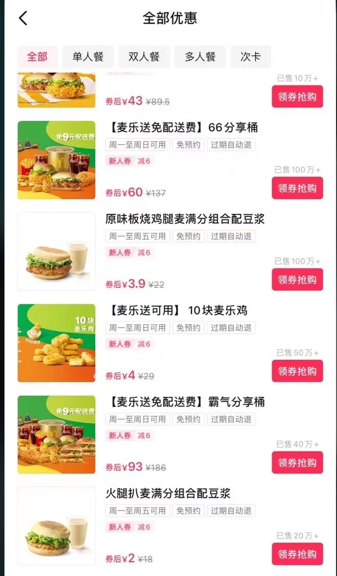 (图片来源:短视频平台上的麦当劳新人团购价格)