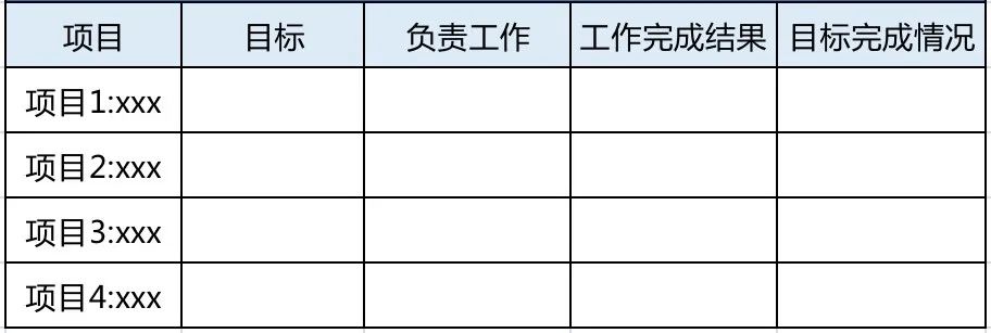 可以将列举出的工作填入下表,来更直观的对比目标和结果。