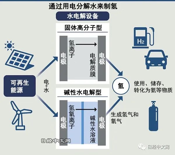 与从事固体高分子型部件的东芝和东丽不同,松下控股从“碱水电解”寻找出路。这是一种使用碱性水溶液作为电解质的类型,不使用高价的金属,易于降低成本。