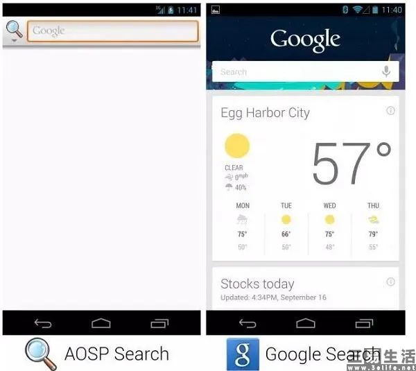 随后,包括搜索,音乐、日历、照相机、键盘等一大批功能也实质上从AOSP中退出,而谷歌的做法也很简单,就是逐渐将这些原本打包到操作系统中的应用独立,再放到Google Play里面发布,并且区分不同版本应用的功能。其中以搜索为例,谷歌版本的搜索功能支持语音搜索、音频搜索、文本到语音转换、应答服务,而AOSP版本则只能进行网络与本地搜索。所以在潜移默化之下,大批核心应用开始脱离AOSP进入闭源。
