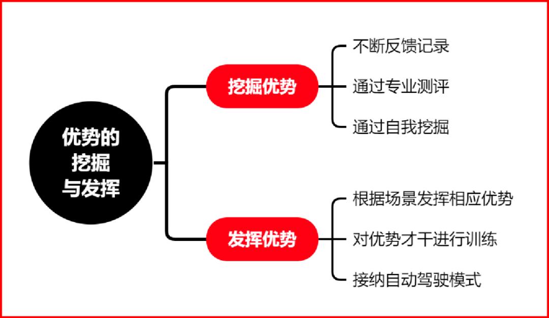 第三种方法就是自我挖掘,因为大部分人对自己是了解的。可以把发现自己的优势当成一种习惯,在日常中去觉察、反思,不断聚焦自己的优势。