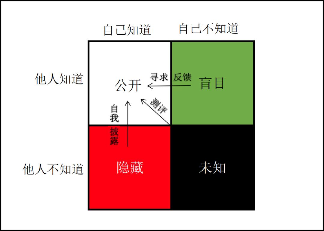 第二部分是自己不知道,但是别人知道的。这一部分可以通过询问别人,通过他人反馈了解。
