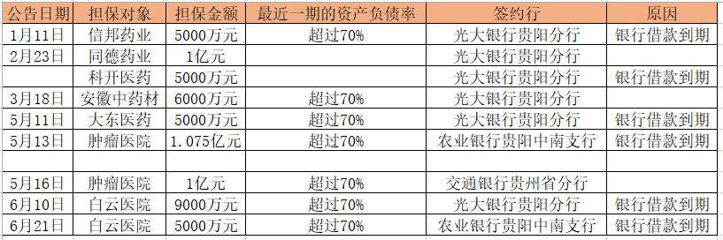 这是本月内,信邦制药第二次为白云医院提供担保。十天前,即6月10日,信邦制药公告称,为白云医院向光大银行申请的综合授信提供担保,提供金额为9000万元,原因同为“银行借款到期”。