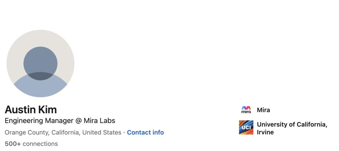 Austin Kim毕业于美国加州大学尔湾分校,曾先后在Open2、Rush、Society、Vertebrace担任全栈工程师,2018年正式加入Mira,成为一名全栈软件工程师。2021年成为一名工程经理。