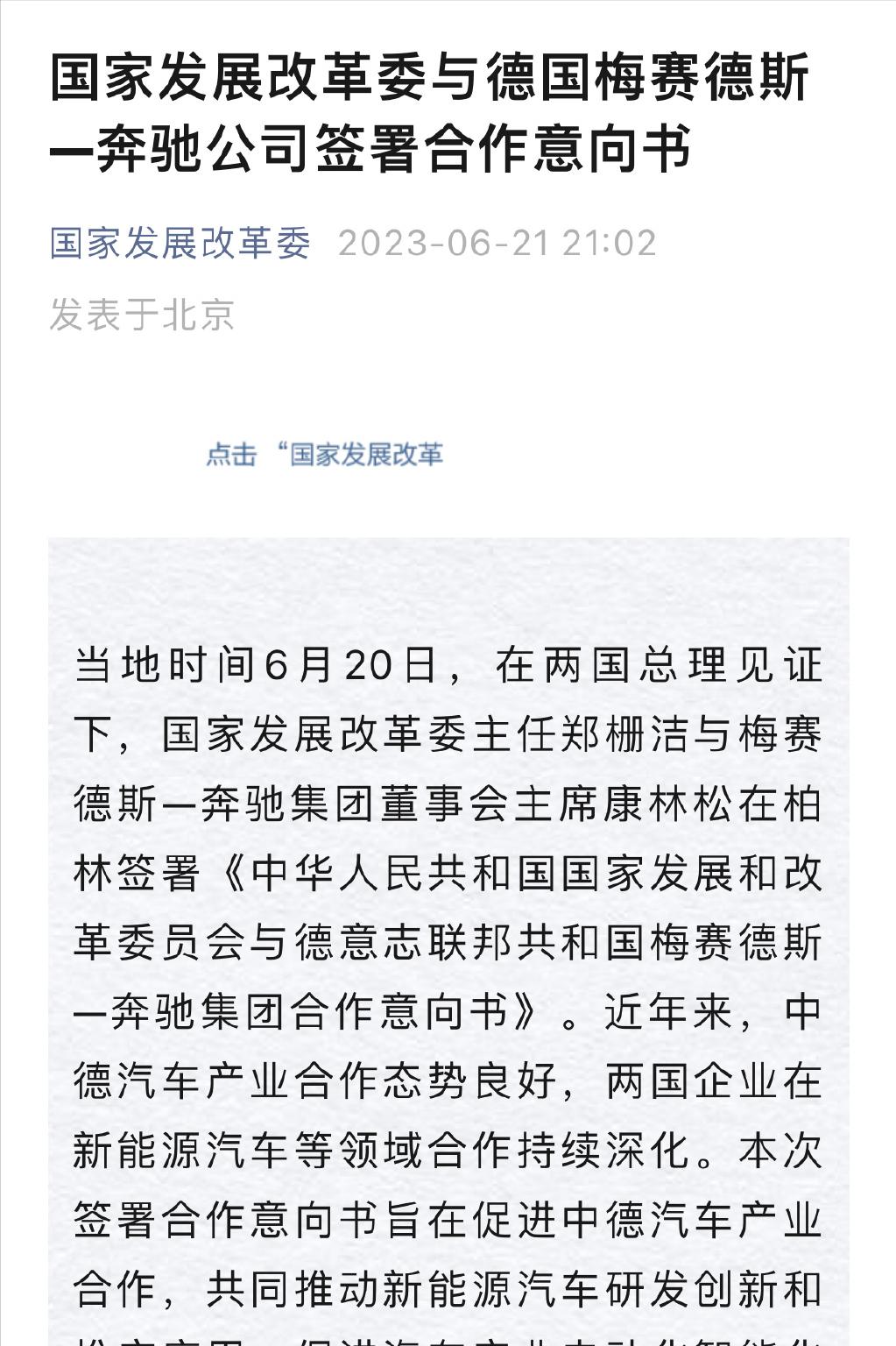 日前,根据媒体消息,在两国总理见证下,国家发展改革委主任郑栅洁与德国宝马、奔驰、大众签订了合作意向书,表示要共同推动新能源汽车研发创新和推广应用,促进汽车产业电动化智能化转型,推动节能减排和绿色低碳发展。