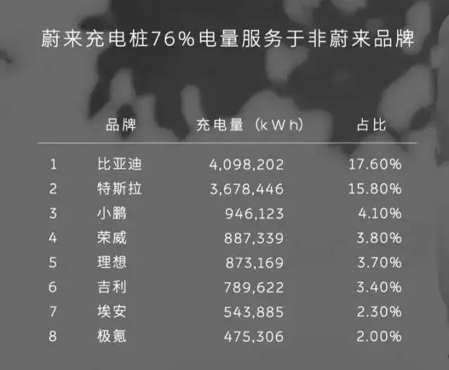 今年春节期间,蔚来充电桩 76% 的用户是非蔚来品牌,在非蔚来品牌中,比亚迪车主占比最高,约为 17.6%。