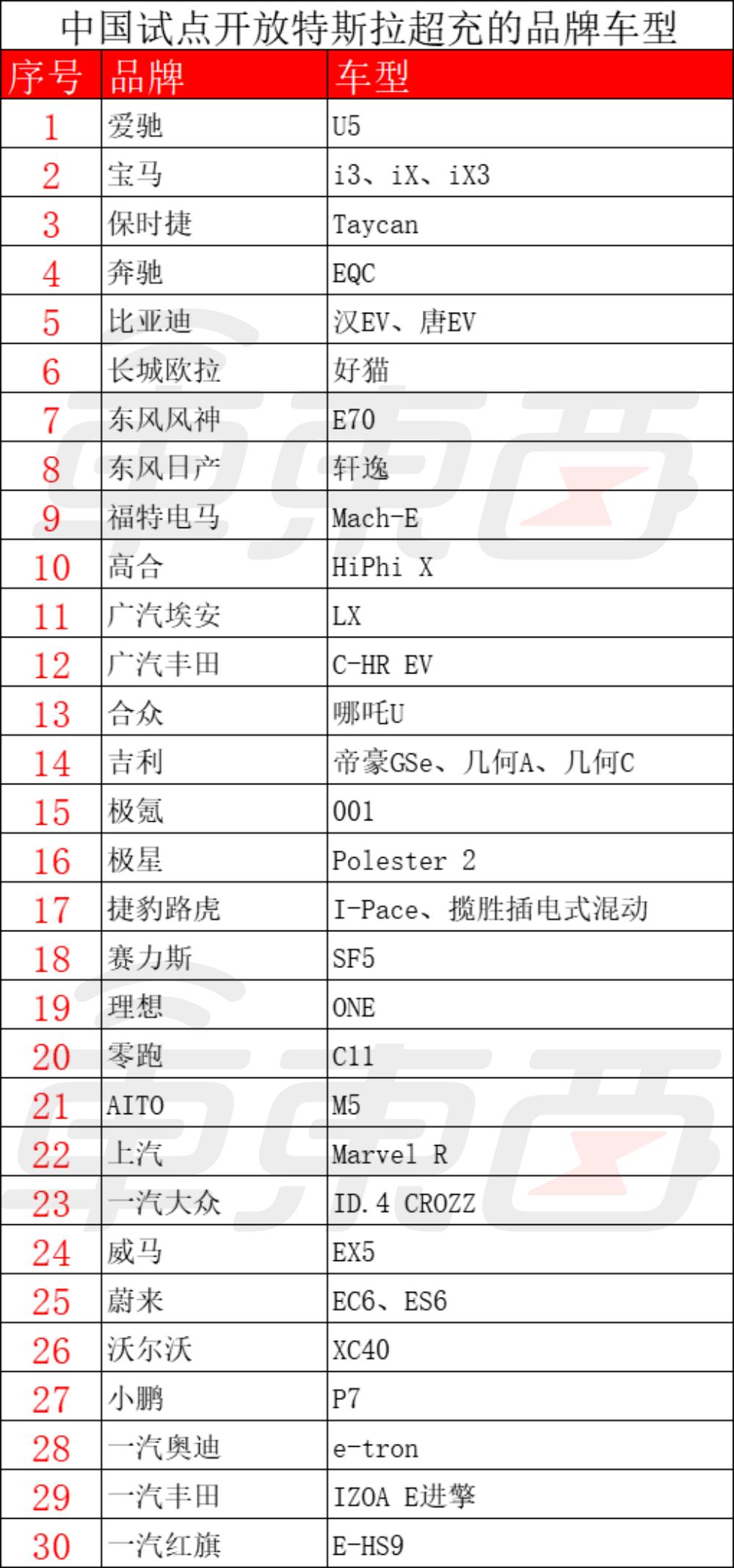 今年 4 月,特斯拉官方宣布,在中国试点开放充电站,可用车型包括BBA、蔚小理、比亚迪等 30 个品牌。
