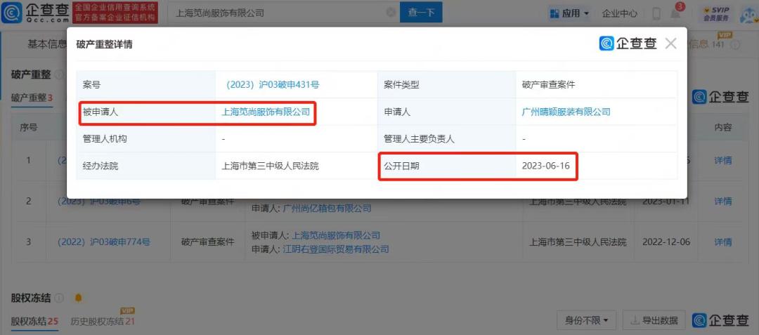 近日,张雨绮前夫袁巴元所创立的快时尚品牌MJstyle上海笕尚服饰有限公司新增破产审查案件,经办法院为上海市第三中级人民法院。