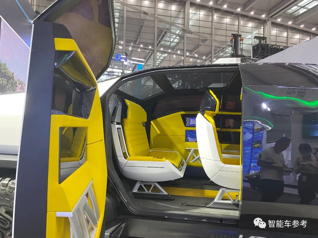 座舱内部,据说可支持驾驶/畅享/商务/敞篷四种模式切换。