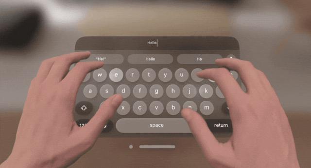 当然,除了虚拟键盘本身以外,Vision Pro也支持外部键盘接入配合使用的方式。从现有的视频效果来看,苹果的虚拟键盘背后,既有眼动追踪和实时渲染的技术支持,同样也有苹果在手势交互精准度的“苦功夫”,以及苹果在整个用户体验层面的多重优化。