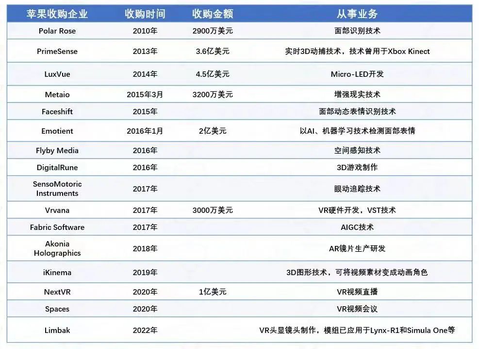 ▲苹果收购AR企业历程(图源:VR陀螺)