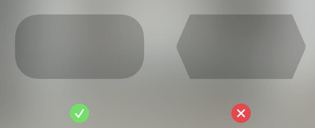同时,在设计图标时,苹果还温馨提醒设计者,要使用圆形、药丸形、或者圆角矩形等设计方式。因为当图标时,边缘锋利的形状会让用户的眼睛聚焦在锋利的边框上,从而降低眼睛的精准度,而且还会造成用眼疲劳。