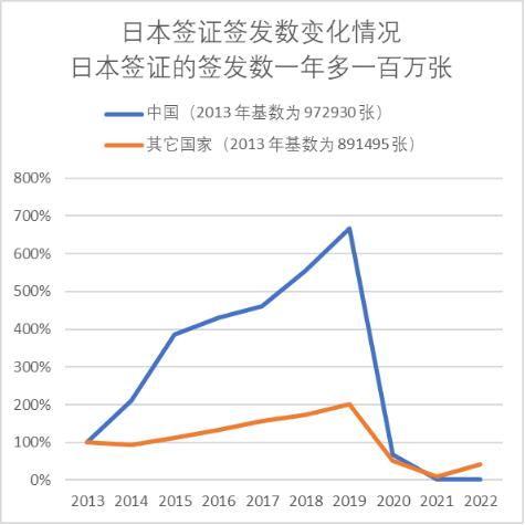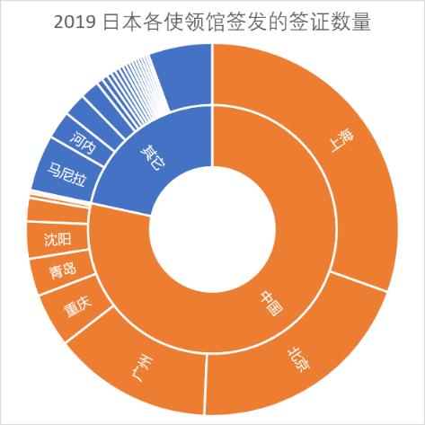 而日本的情况更加夸张——2019年总共828万张签证中,中国各使领馆签发了649万张(78%)。