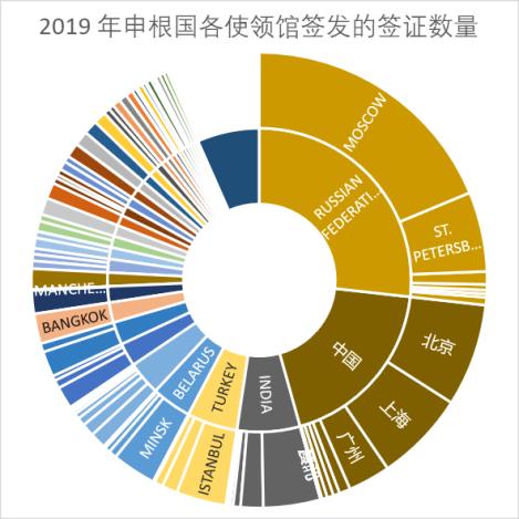 同样的,在2019年签发的1516万本申根签证中,中国以287万本(19%)仅次于申根国家的邻国俄罗斯。