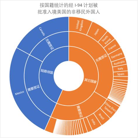 而在2019年美国国土安全部的统计当中,中国人(含持尚未获得免签待遇的中国港澳特区护照访美的旅客,但不含持已经获得免签待遇的中国台湾地区护照访美的旅客)以326万人次的访美非移民旅客,在总人数中排名第五,占比3.99%。在仍然需要签证才能访问美国的群体中,来自中国的旅客数量仅次于美国的邻国墨西哥,排名第二;在非陆路邻国中则次于英国和日本,排名第三。