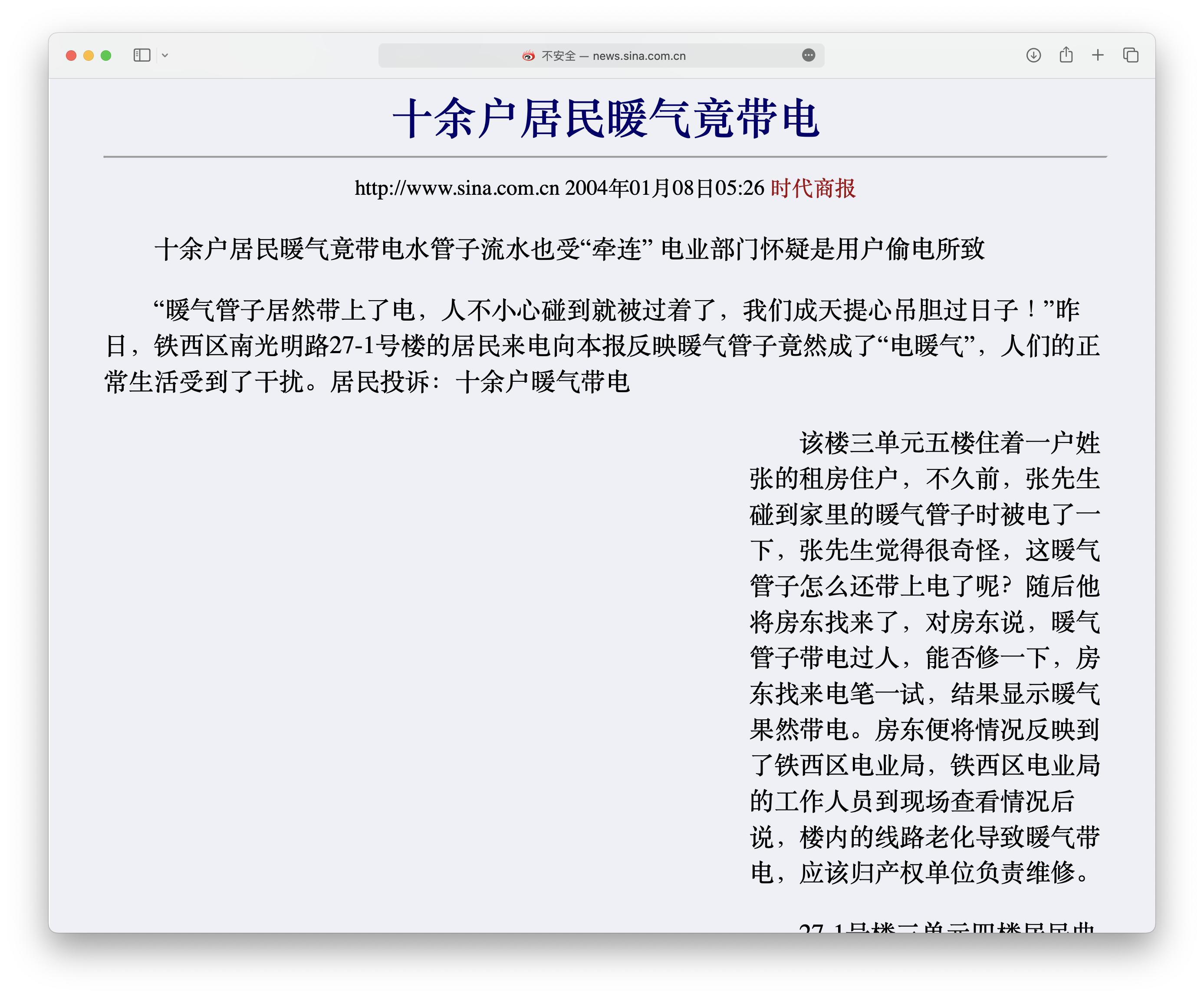 在搜素引擎以「暖气带电」「水管带电」等关键词搜索,我们可以轻松找到大量相关报道,甚至我敢肯定相关部门在上门检查后也一定会向伤者家属解释了触电的具体原因。所以在这里,我并不认为Apple和第三方充电器品牌不为触电情况负责的行为有什么问题。