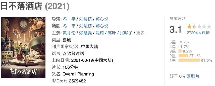 口碑评分方面,豆瓣开分7.5,目前已落到6.9,在悬疑片领域里中规中矩,且回落幅度属于“陈思诚式影片”的常态。