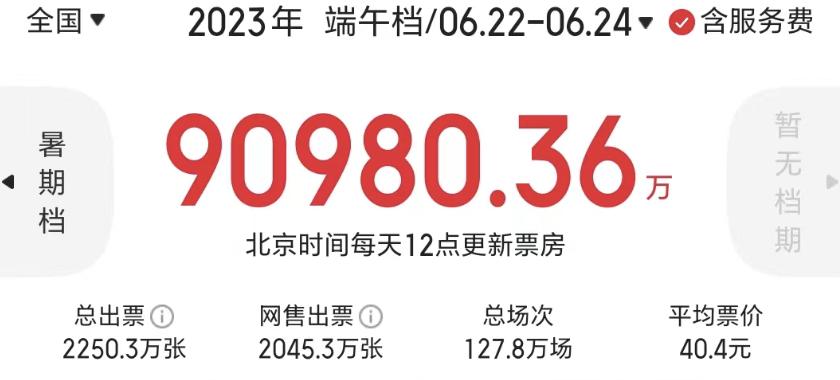 据猫眼专业版全天票房动态预测显示,当日票房从9000万提高到1.1亿,再提高到1.4亿,最终,该片的首日成绩超过1.5亿,而且在次日实现逆跌,来到了1.83亿,端午假期最后一天虽然有所滑落,但也超过首日,以超5亿的档期票房成为断崖第一。
