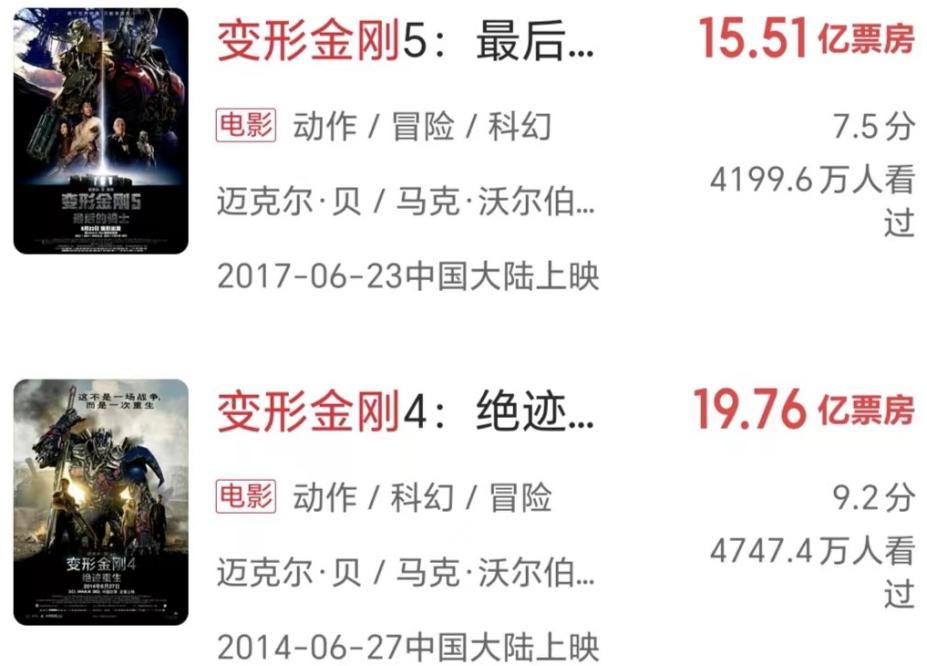 △《变形金刚4&5》成绩