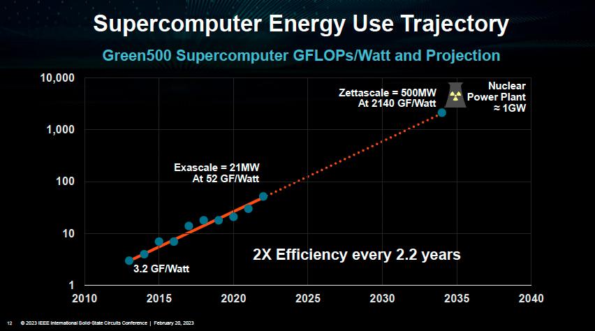 半导体工艺摩尔定律正在接近尾声,但是芯片性能和能效比的指数发展规律仍然如火如荼,尤其是在热门的专用加速器领域——例如GPU计算的能效比就是每2.2年改善两倍。