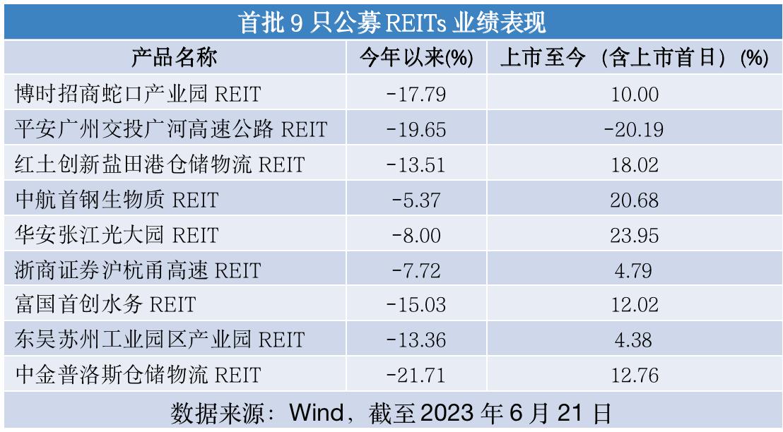 据WInd统计,截至6月21日,首批9只公募REITs上市以来平均涨幅9.6%,其中8只取得正收益。