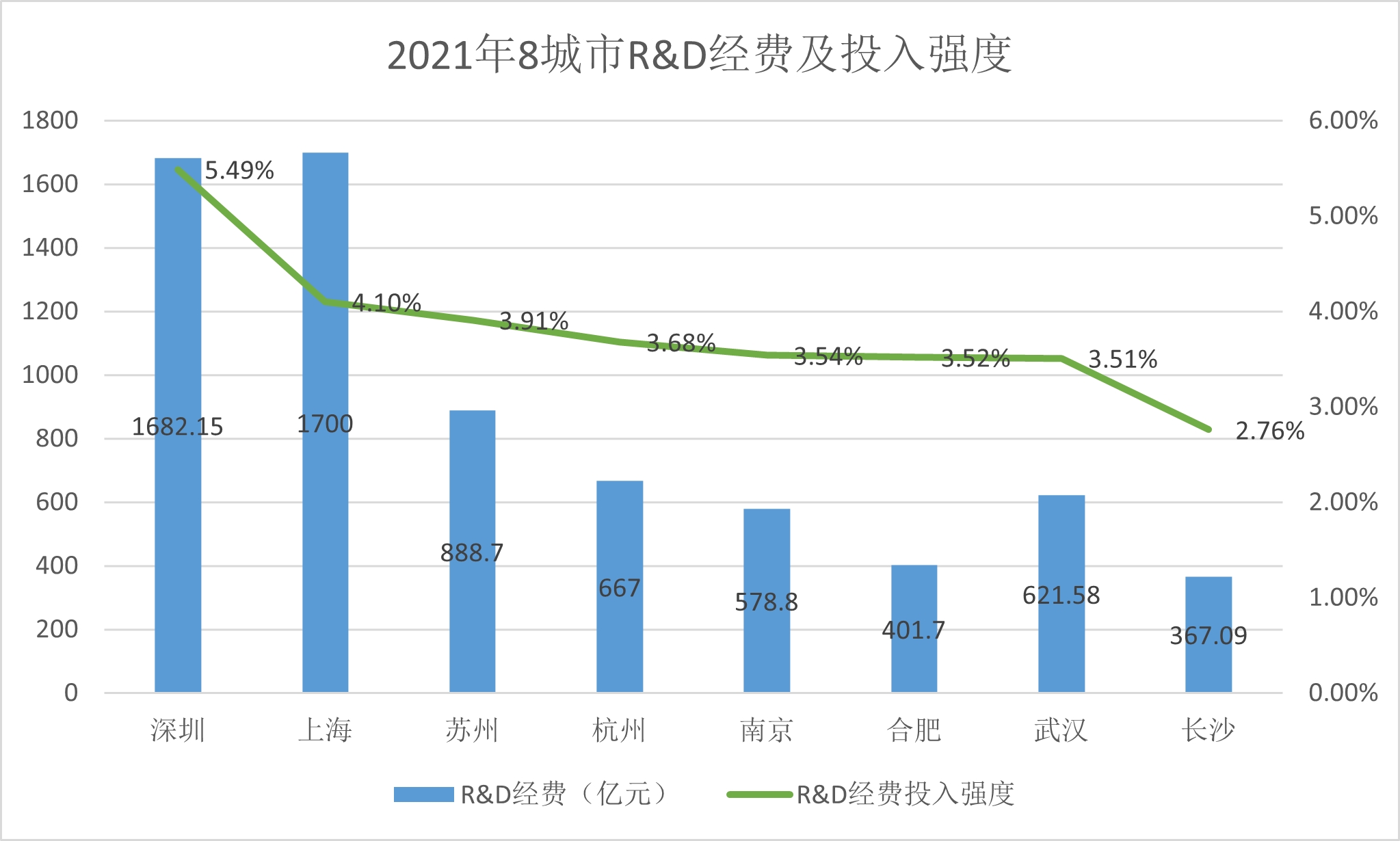 长沙R&D投入强度仅深圳一半(数据来源:公开报道)