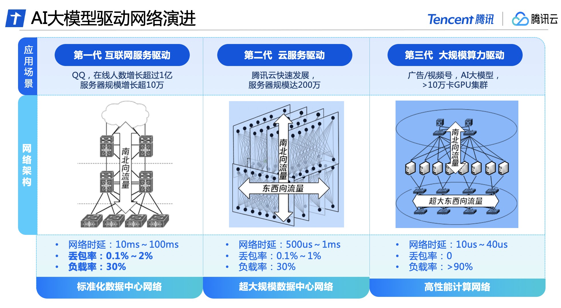 以腾讯自身为例,腾讯的计算网络发展也经历了三大阶段: