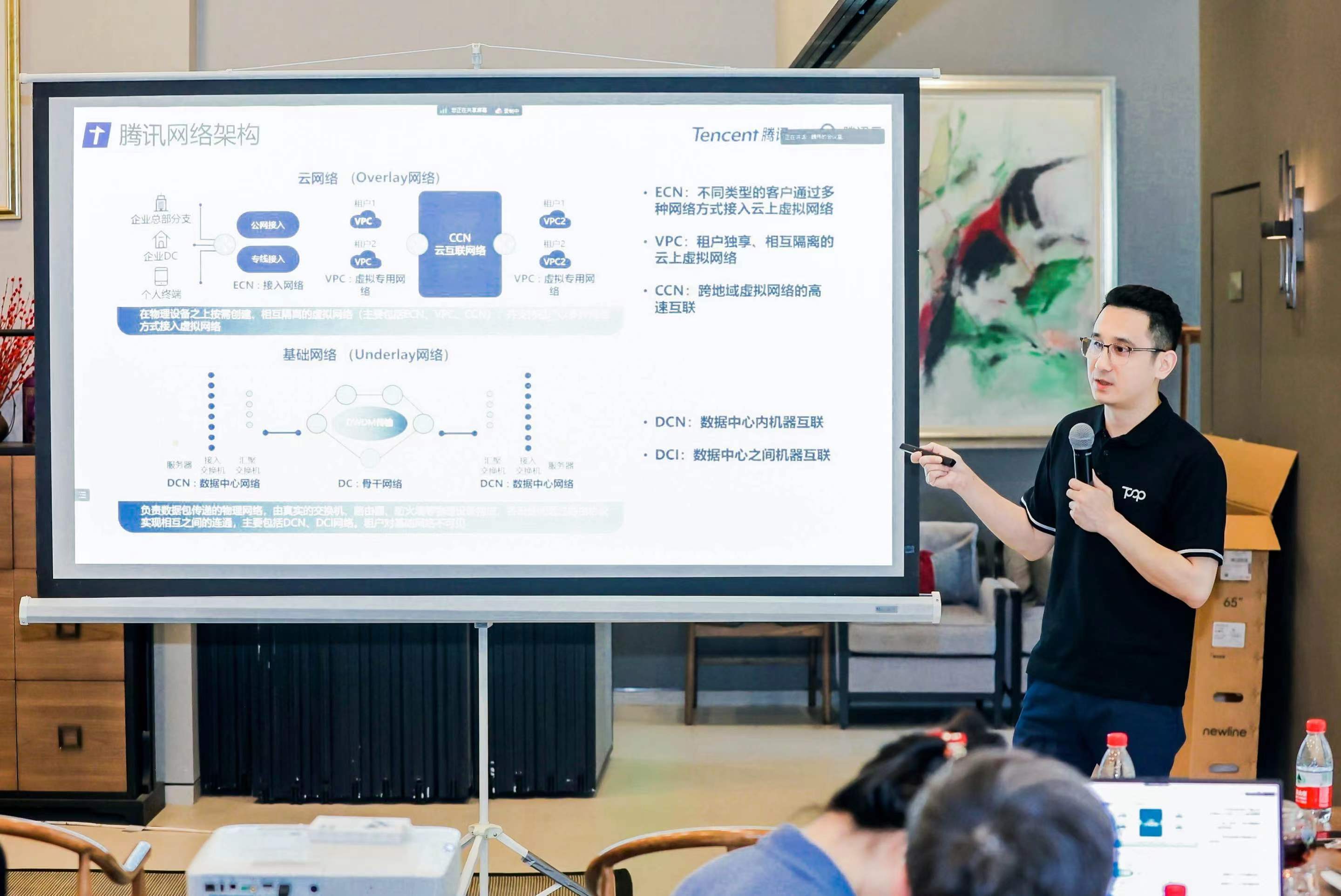 数据中心之间的互访流量越来越多——比如企业用户需要调用自己在云上的各类数据,这些数据存放在腾讯云不同的格子中。这对网络要求也更高,比如时延要求比以前是10倍甚至更高提升。
