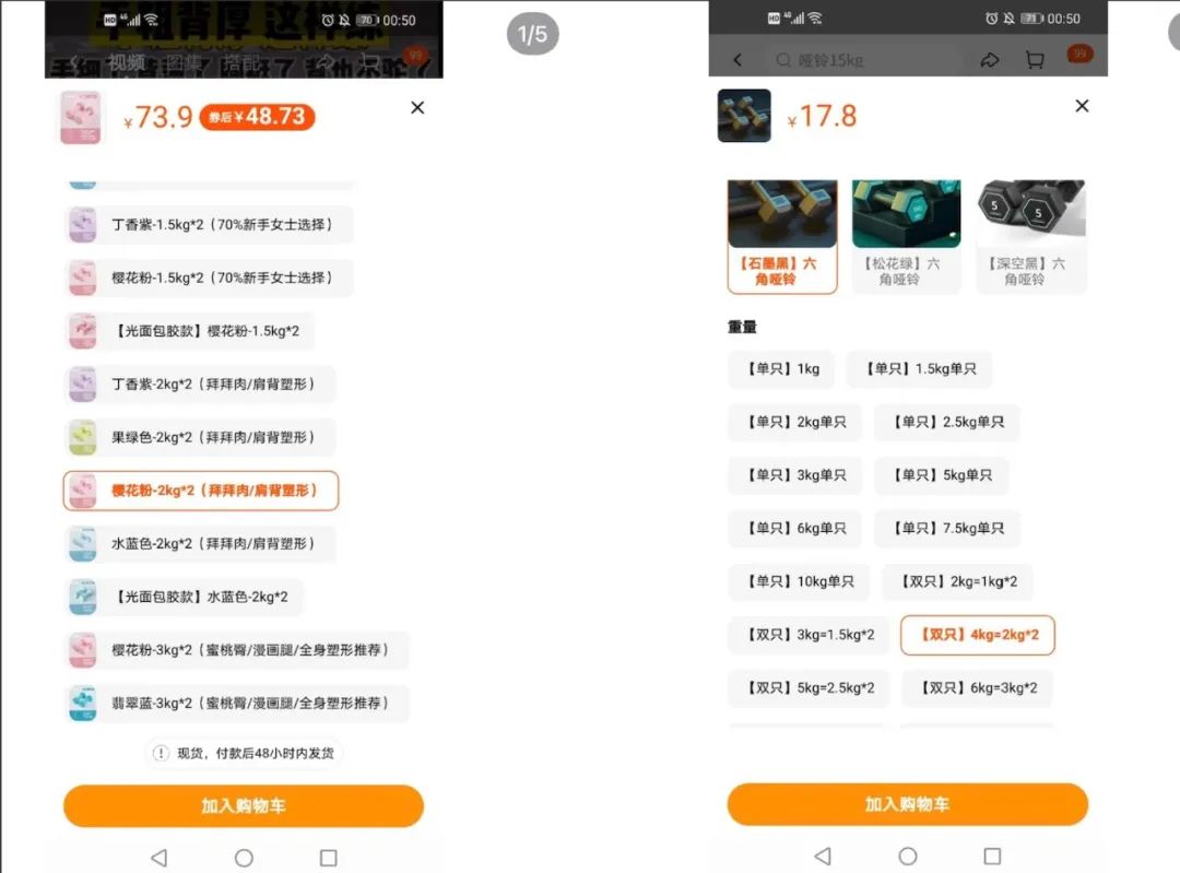 图源:淘宝贴上女性专属标签后,价格更高了(哑铃对比)