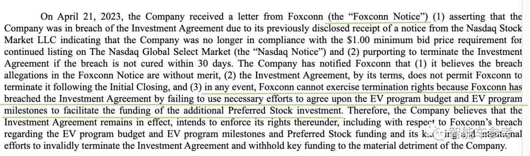 另外,洛兹敦汽车还强调富士康违反投资协议。因为按照协议,双方应该在5月7日前确定开发新车型的合作计划,但并未履约。