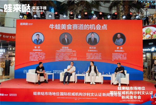 此次市场地位认证暨品牌升级发布会,邀请到了中国烹饪协会副会长,广东省餐饮服务行业协会执行会长,谭海城;中国烹饪协会理事,深圳市烹饪协会会长,刘永忠;广东省连锁经营协会执行会长,张小琳;蛙来哒品牌创始人,罗浩;蛙来哒品牌联合创始人,罗清;蛙来哒总经理,李昊;以及美团、大众点评、抖音本地生活、饿了么等主流餐饮平台、以及红餐网、赢商网等在内的行业媒体代表;蛙来哒加盟商伙伴代表等,共同见证蛙来哒沙利文认证授牌仪式。