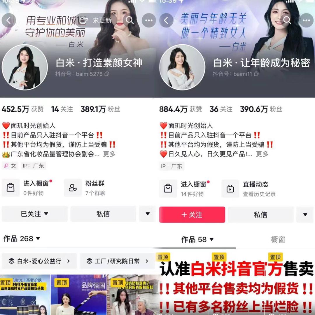 以近30天销售额破亿的面玑时光为例,该品牌强绑定的人设账号“白米”在短视频中打造的人设是: