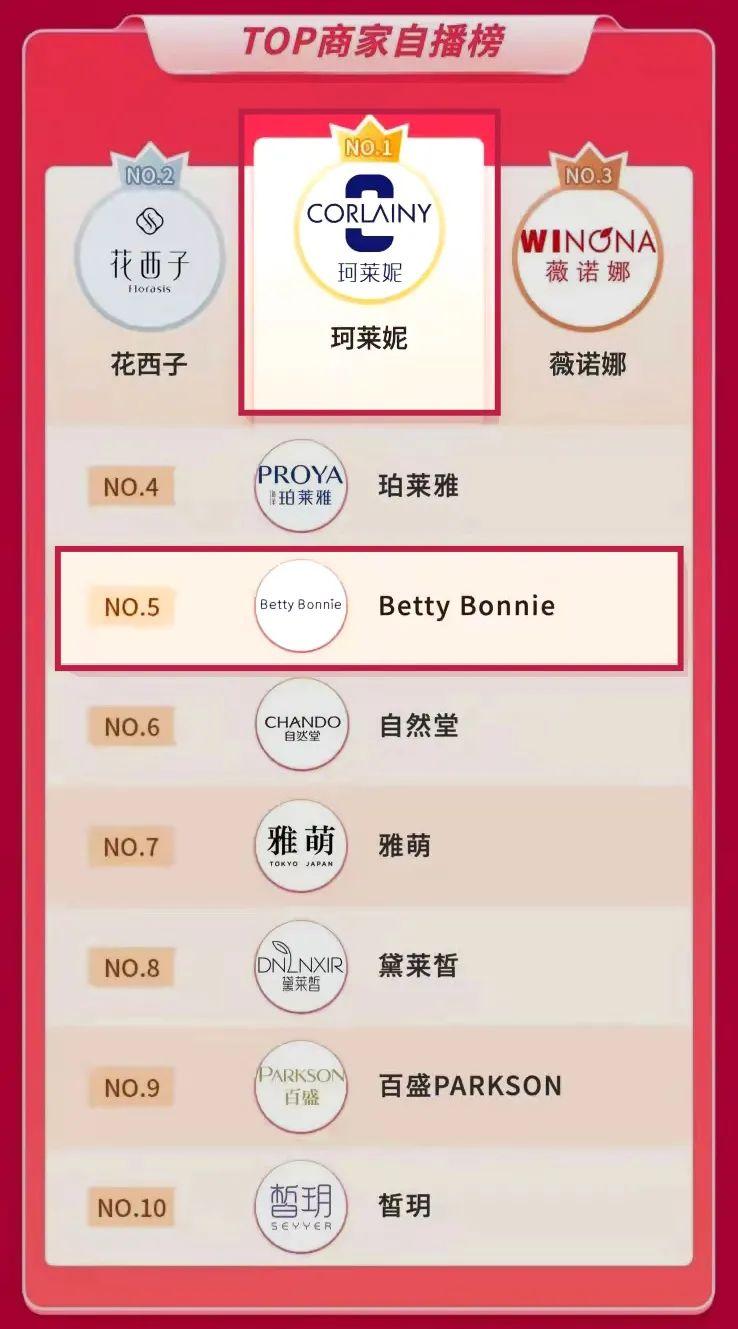 在“花期”方面,从2021年开始,白牌们开始在抖音直播间发力。在同年双11大促期间,如珂莱妮、Betty Bonnie、黛莱皙等美妆白牌的销售额一度超过花西子、薇诺娜、珀莱雅等知名国货品牌。