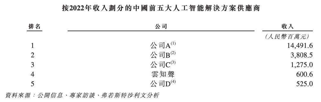 年收入6亿元,放在科技互联网行业不值一提,但在变现相对困难的人工智能行业,已经能坐上牌桌。根据弗若斯特沙利文的资料,按收入计,云知声是2022年中国第四大AI解决方案提供商,在中国智慧生活和智慧医院行业均排名第三。
