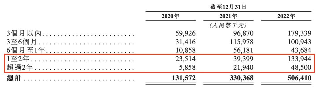深AI发现,云知声给客户的正常信贷期是180天,也就是半年。但过去两年,云知声的很多应收款都延期了。招股书数据显示,从2020年到2022年,云知声应收账款的周转天数分别为179天、185天、254天。这已经大大超出了180天的安全线。去年,云知声有1.82亿元的应收款账期超过1年。