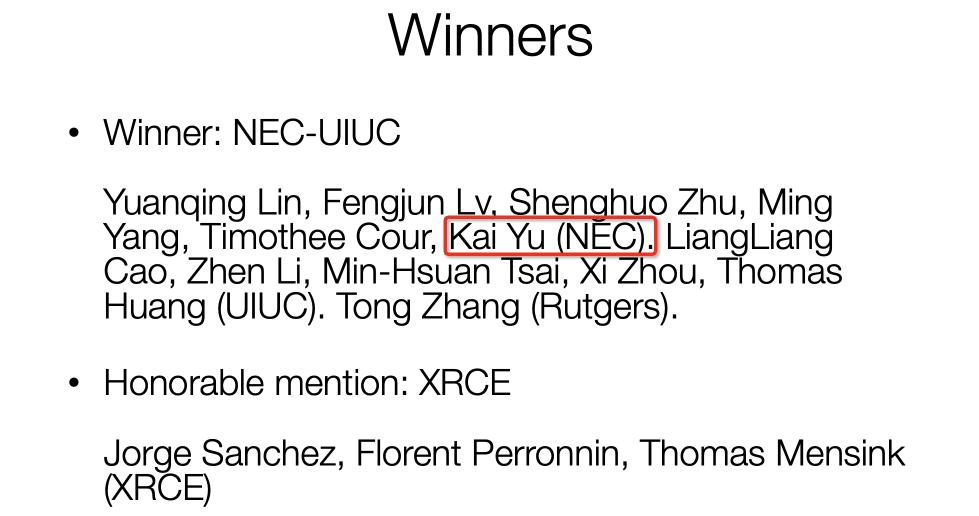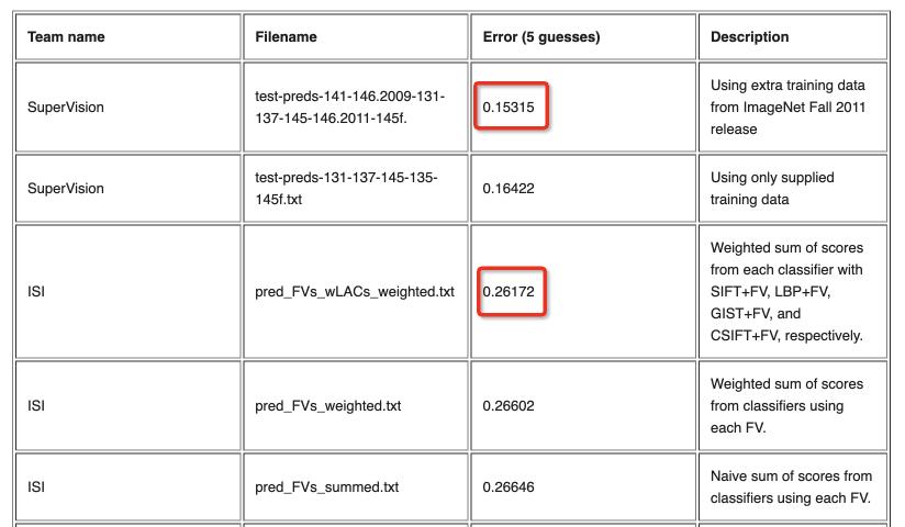 成绩显示,2012 年度 ImageNet 竞赛的冠军是一个名为「SuperVision」的三人团队,他们在 ImageNet 的第一项「图像分类」任务中实现了低至 15.3% 的错误率,比第二名的 26.1% 低了 10.8%——可以说是「遥遥领先」。