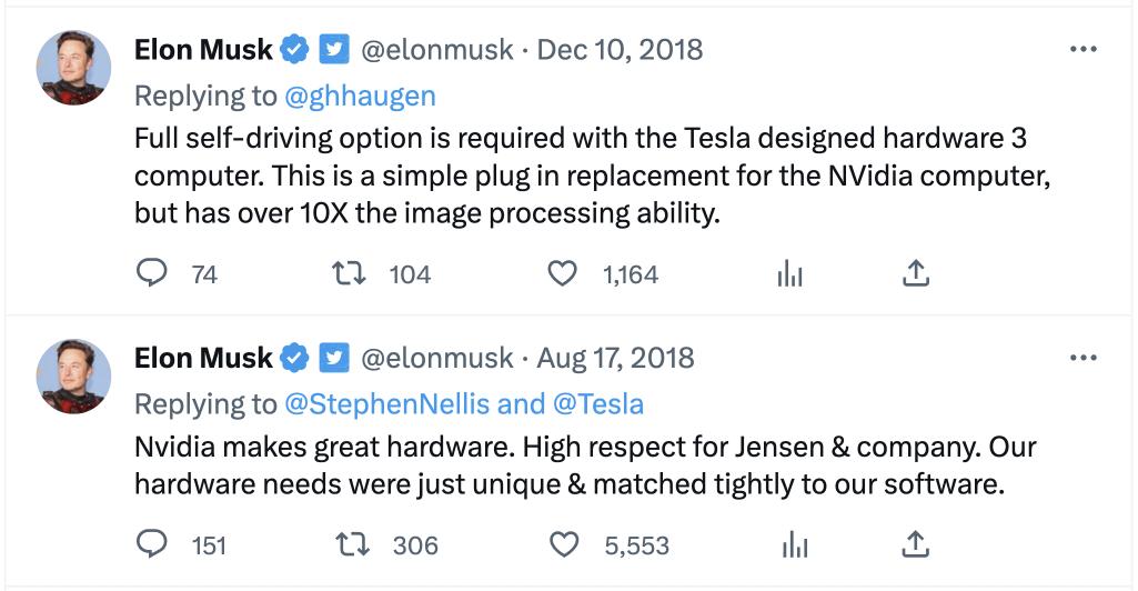 当然,马斯克之所以完全不慌,还是因为特斯拉已经跟英伟达暗中沟通了很久。