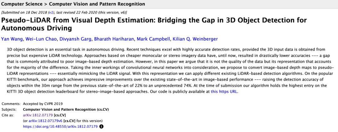 [06] Pseudo-LiDAR from Visual Depth Estimation: Bridging the Gap in 3D Object Detection for Autonomous Driving