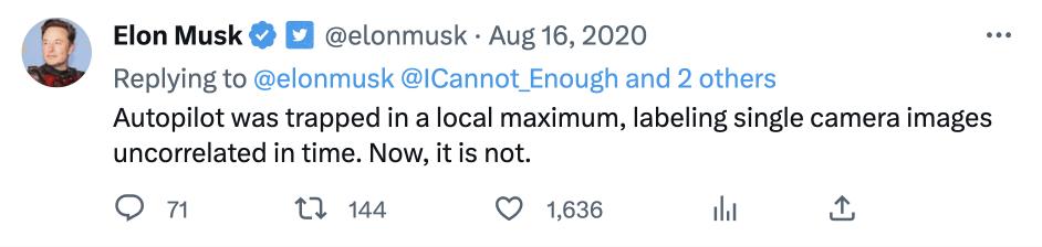 另外一位从事于自动驾驶算法的技术专家告诉我们,Andrej Karpathy 之所以选择离开,还有一个潜在的原因是:他与马斯克在自动驾驶的技术路线方向上可能发生了分歧。