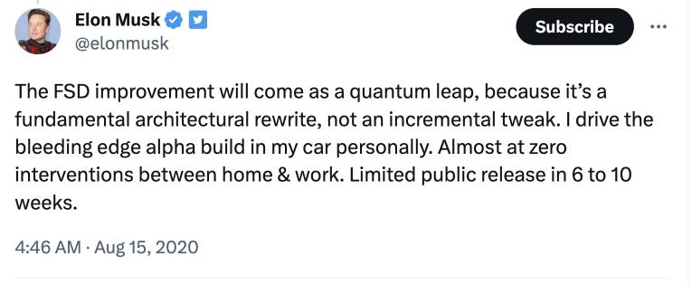 可见,在马斯克看来,特斯拉的自动驾驶其实也正迎来一个非常关键的时刻,虽然它更加艰难,但它会像 ChatGPT 一样迎来一次爆发和质变。
