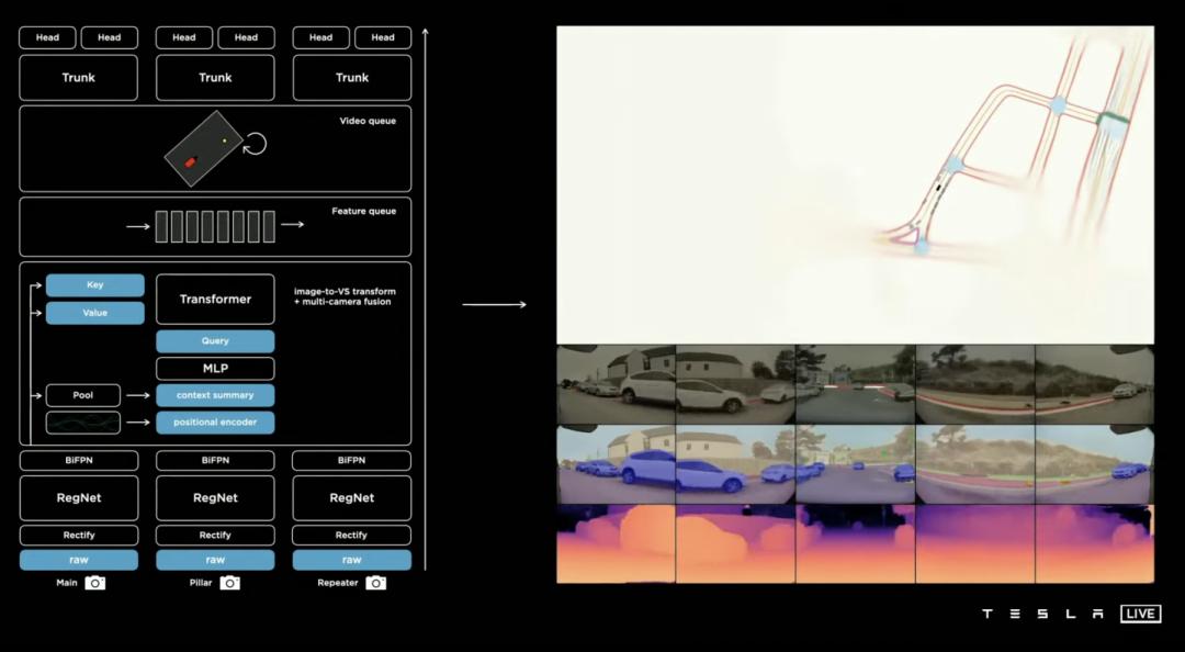 与国内的企业相比,特斯拉真正强大的一点,是它能够把最前沿的技术拿过来做工程化,比如说 Transformer。
