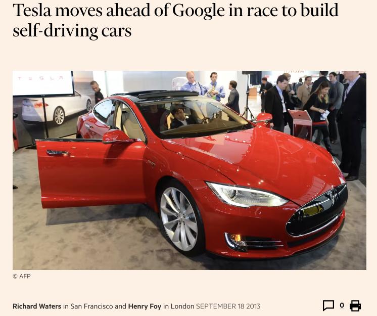 [02] Tesla moves ahead of Google in race to build self-driving cars, FT