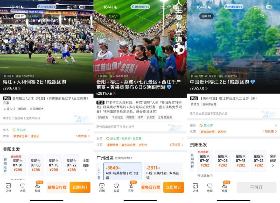 携程平台上的“村超”旅游套餐