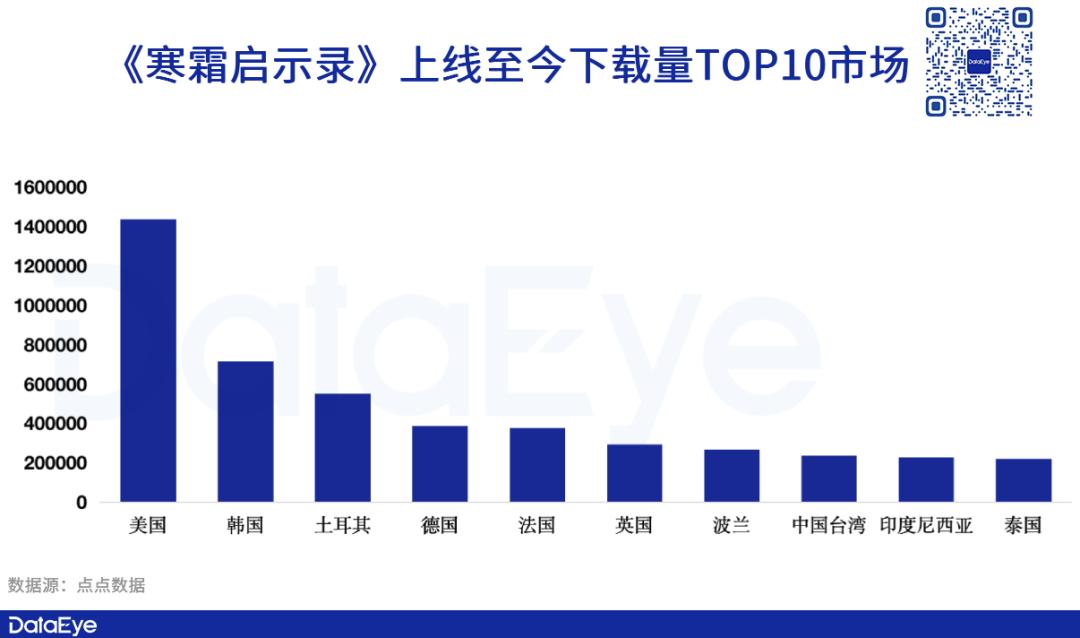 下载方面,美国、韩国、土耳其是《寒霜启示录》下载前三的市场。