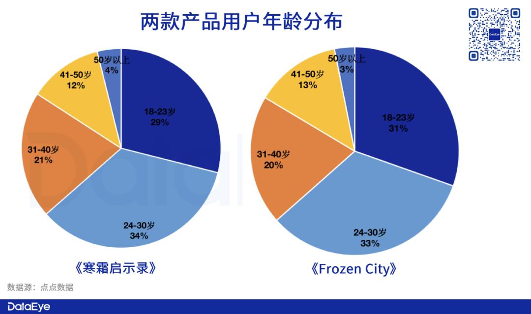 两款产品采取相同的美术风格,因此,用户的年龄分布较为接近,都是以18-30岁的中青年群体为主。