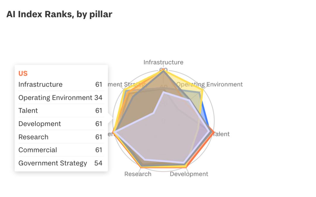 自2019年全球人工智能指数首次推出以来,美国和中国一直保持第一和第二位。