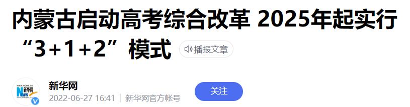 而就在去年,内蒙古自治区公布新高考改革方案,宣布从2025年起全区采取平行志愿模式。