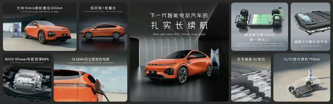 在动力方面, G6 基于 800V 高压碳化硅 SiC 平台+3C 电芯和X-HP 3.0智能热管理系统+热泵空调加持,提供单电机后驱和双电机四驱两种动力版本。