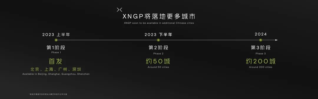 何小鹏在发布会上表示,在23年上半年,XNGP已在北上广深4个城市开放,并预计在23年下半年开通近50个城市。