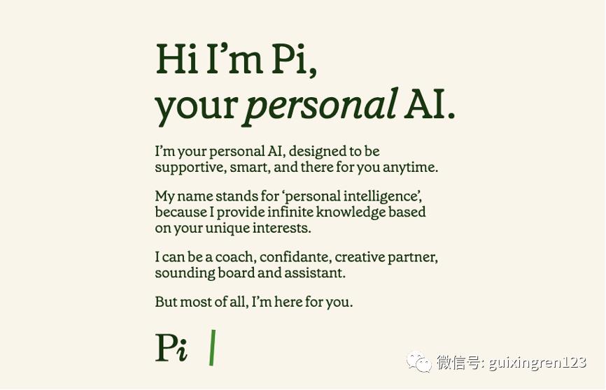 Inflection AI成立的主要业务就是围绕着大语言模型的训练和开发,而成立仅两个月后,就获得了2.25亿美元的A轮融资。Inflection AI于今年5月推出了首款产品——Pi,这是一个类似于ChatGPT的聊天机器人,但跟ChatGPT通用人工智能的定位不同,Pi定位于为个人服务的人工智能。主要围绕着个人生活的需求展开,比如帮你安排日程、准备会议和学习新技能,记住与你的对话等。
